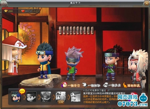 省去了手动一个一个点击学习的麻烦,“一键学习”功能将自动帮您完成意志学习!点击一键学习后,将会自动学习意志,直到点亮第五位老师——三代目火影、当前意志修行界面已经学习满、剩余意志不足以学习,以上三种情况之一满足时将会停止自动学习。