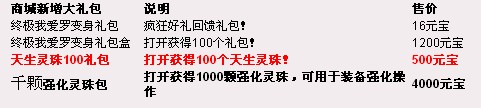 活动期间,全区全服商城推出众多商品打折优惠,众多礼包限时出售,仅限活动期间购买,心动不如马上行动!
