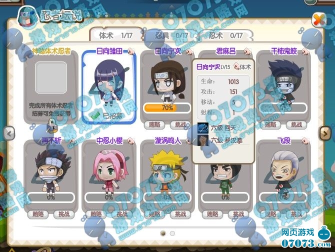 每挑战一次或者贿赂一次进度条就会前进,当进度达到100%的时候忍者就是属于你的咯!