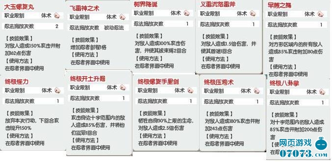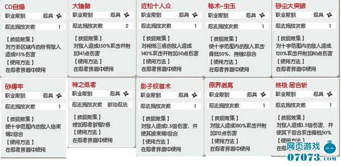 1.目前所有红忍以上的忍者分类和各职业终极无双图