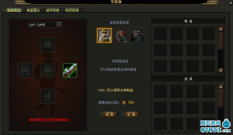 战役中的关卡都会掉落不同的装备,当然您也不必为了掉落概率而烦恼,在军需部中花费一定的功勋能够制造出所有的装备。