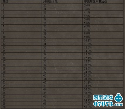 3. 军团等级列表: