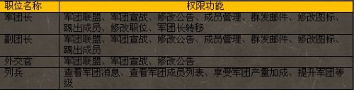 军团内部存在职位体系,不同职位的玩家可以操作的功能也不同。