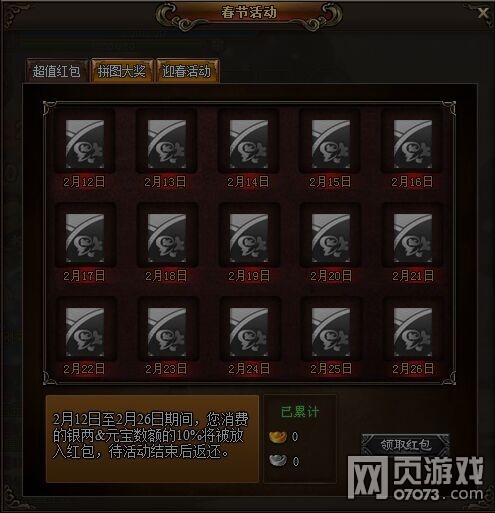 活动期间,玩家消费的银两&元宝数额的10%将被放入红包,活动结束后玩家将会收到包含所有返还的大红包~