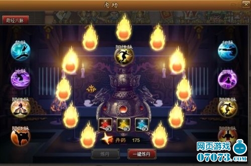 街机三国灵丹妙药系统介绍,玩家点击人物面板的内功按钮,进入内功界面。