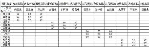 街机三国珍宝阁第八层是前不久才开启的,所有的材料均在南蛮入侵地副本掉落, 下图是材料配方以及掉落副本的信息。