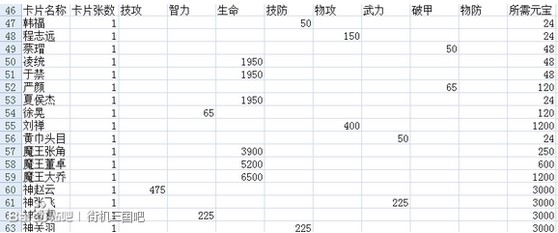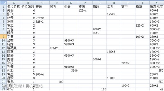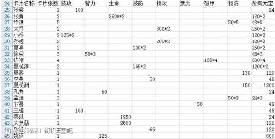 将星卡片所需元宝一览。不包括刷新将星录用掉的N多金币和元宝。