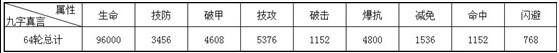 以下图片是修炼9字真言1轮所增加的属性以及花费的元宝