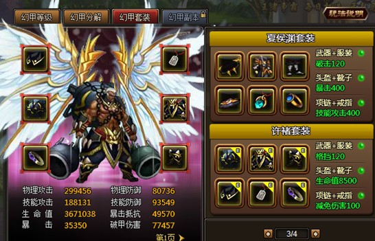 开放了2套金色品质幻甲(许褚套装及夏侯渊套装),玩家凑齐并装备一套金色品质幻甲,将可在城镇中外显该套名将造型,我们将在后续版本中开放【幻甲副本】功能,届时玩家只要激活对应的一套金色幻甲,即可化身为该武将进入幻甲副本进行挑战。