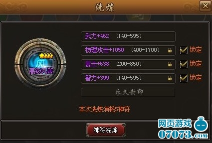 点击神符洗炼按钮可对神策现有属性进行洗炼,洗炼后的属性为完全随机。