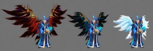 2、 翅膀分为绿、蓝、紫、金、暗金等等颜色级别,并拥有不同的外形变化。