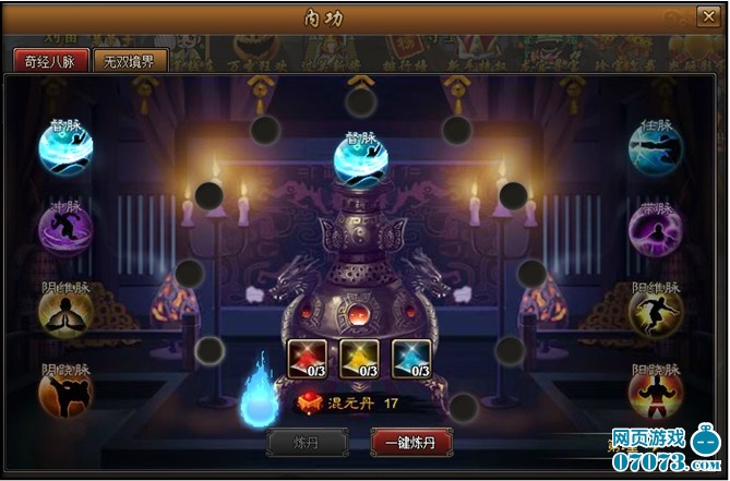 需要完成全部第一重八个经脉后才可进行修炼,在第一重奇经八脉界面,按界面右下角的