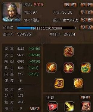 武将选择好以后就是看他的技能了,除了最后一个技能强烈建议用天资,前面2个技能选择性很广,武力将可以用雷击.狂怒.号令.山崩配追击(骑兵技能).硬弓(远程暴击伤害增加).叛乱等,智力将可以用群疗配遗愿.反击(近战)等。