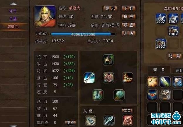 橙色武将是好的,橙色武将当中也有好有坏的,戚继光是比较好的一个~但是如果加点方法不正确的话,再好的武将也会变废掉。。。下面就给大家分享一下高手玩家对君临天下戚继光的加点心得吧。