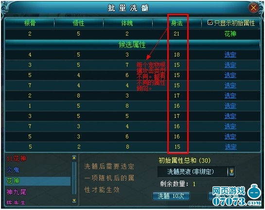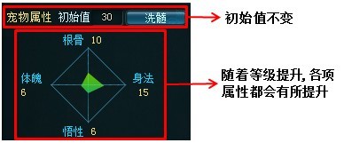 (3)由于每只宠物都有自己的侧重属性,玩家洗髓的目的是让宠物的侧重属性更高一些。
