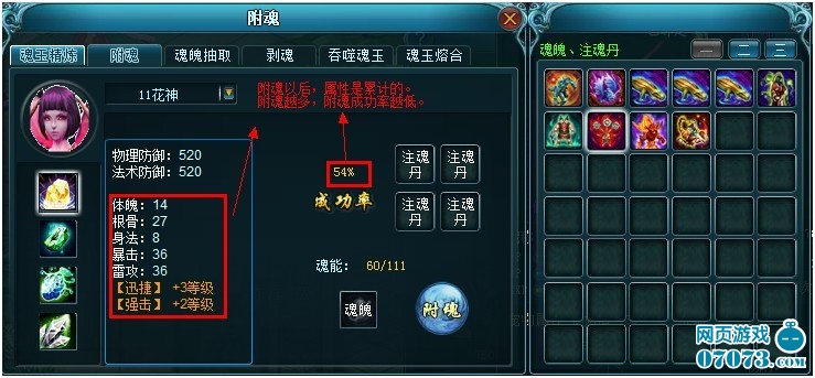 (3)魂玉可以通过附魂增加属性。有些极品的魂是可以增加宠物技能的。附魂越多附魂成功率越低。