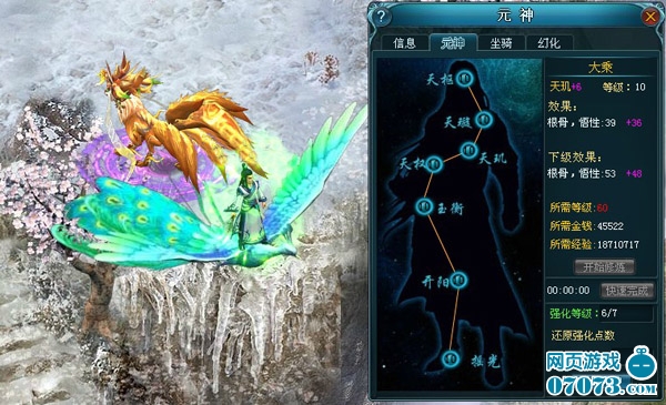 随着角色等级不断提升,内功修炼也需要跟上,元神升级系统可以提升玩家们所有属性,修仙者必须打通元神七大脉络方可练成真身。这七大脉络和对应的属性是天枢-体魄、天璇-命中、天玑-悟性(破军职业则同根骨)、天权-物理和法术防御、玉衡-冰毒雷抗性、开阳-闪避、瑶光-暴击及暴击效果。