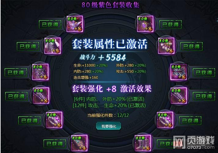 剑侠情缘2网页版玩家收集套装可以激活强化加成,强化加成后可增加套装收集百分比属性,今天小编就为大家介绍一下集齐80级紫色套装后可以获得多少属性加成。