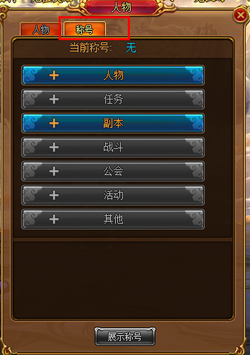 点击人物界面的更换称号选项,会显示当前人物称号和可以替换的人物称号选项一览。