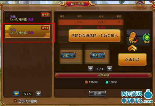 公会创建:等级到达47级 ,可以开启公会功能