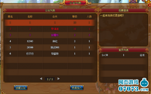 公会列表中显示已经创建的公会。