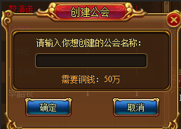 点击,花费一定数量的铜钱,建立公会。(公会名称,6个文字以内)