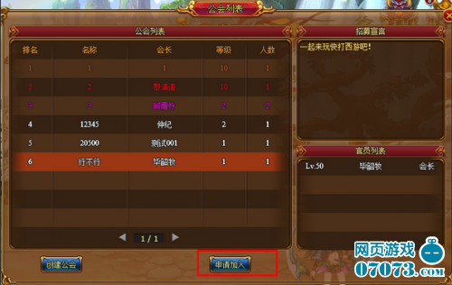 申请加入:选择加入的公会,进行申请。