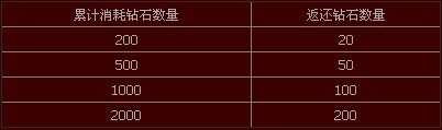 活动期间,玩家使用钻石洗英雄属性,累计消耗钻石达到200以上,可以获得返还,消费越多,返还越多