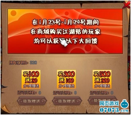 红红火火新的一年,给大家带来的活动必须是给力又实惠!活动期间,大家将可以参加江湖帖的限期购买大回馈活动,有买有送,多买多送!机会仅此一次,别人我可不告诉他们哦。^_^