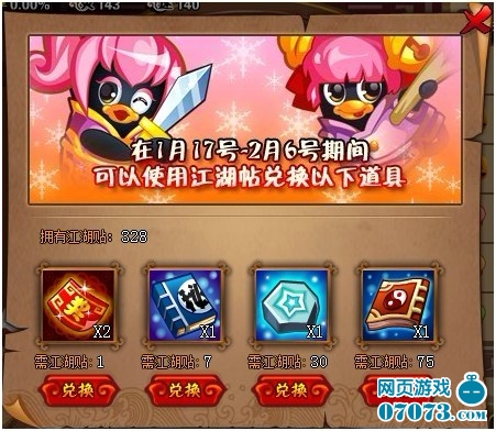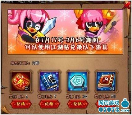 新年到来之际,江湖帖将可以用来进行游戏内物品兑换哦。有道具需求的同学,要抓紧机会啦!