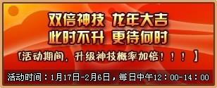 第二波双倍神技升级概率即将推出!希望大家在新年龙精虎猛,神技大成!