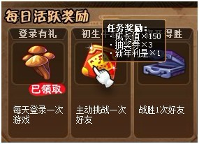 新年礼包给大家奉上大乐斗Ⅱ项目组给大家精心准备的新年利是!活动期间,只要挑战一次好友,就可以获得这个新年利是了!每个新年利是都蕴藏着大礼!