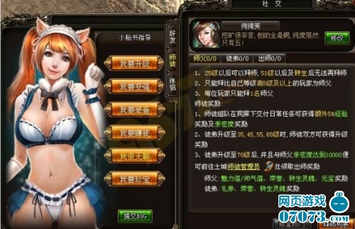 2、只能拜比自己等级高5级以上的玩家为师父;
