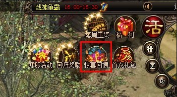 活动开启后,会在游戏界面右上角出现活动图标“惊喜回馈”