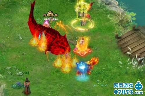 过小河流后,水寨子终极水妖强势登场,超极大的生命值及智能鱼妖,怪物在受到伤害时,每一阶段都会释放技能,而在狂暴后,将会把所有玩家击落水中。