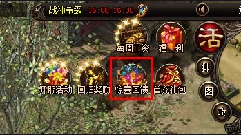 活动开启后,会在游戏界面右上角出现活动图标“惊喜回馈”