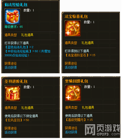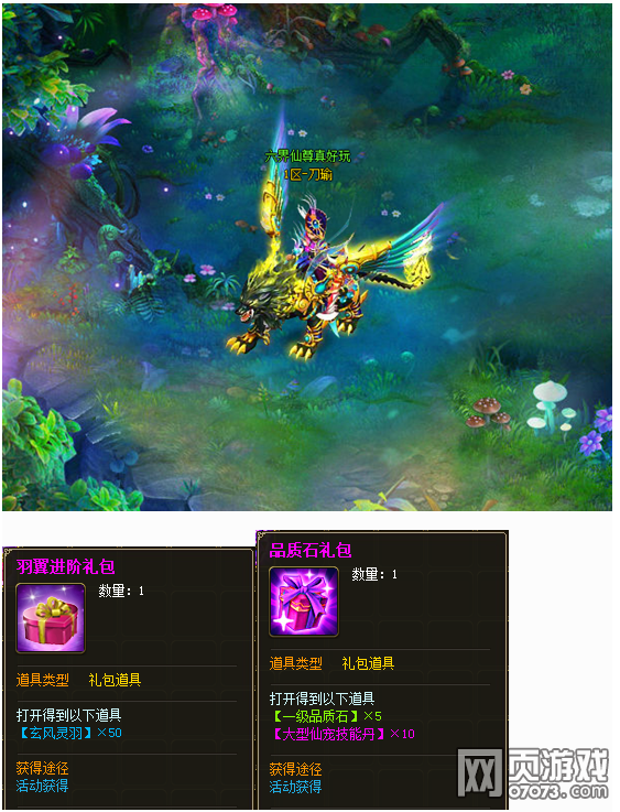 2、每进阶消耗10个【玄风仙羽】,即可获得【仙羽回馈礼包】×1;