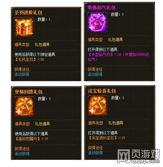 2、每进阶消耗10个【玄风仙羽】,即可获得【仙羽回馈礼包】×1;