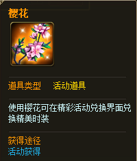 参与“幸运大转盘”活动,获得的【樱花】可以兑换绚丽橙色时装—樱花物语(增加角色火攻)、九尾天狐(增加角色雷攻)!想兑就兑,兑由我心!