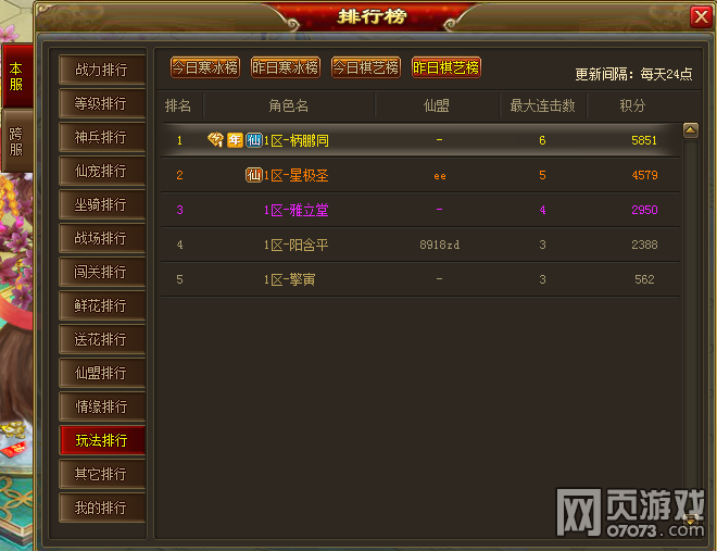 温馨提示:棋艺排行榜就在玩法排行中寒冰榜的隔壁哦!