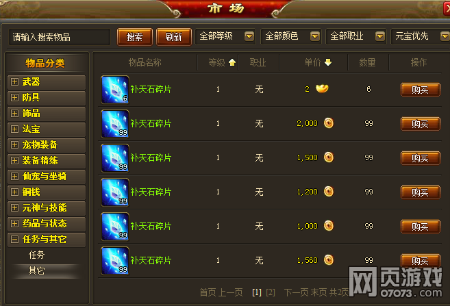 这次更新推出了市场刷新功能,选中自己想要的物品分类,就可以愉快地刷新了。不说啦,小六要去市场刷刷看有没有便宜的补天石碎片!