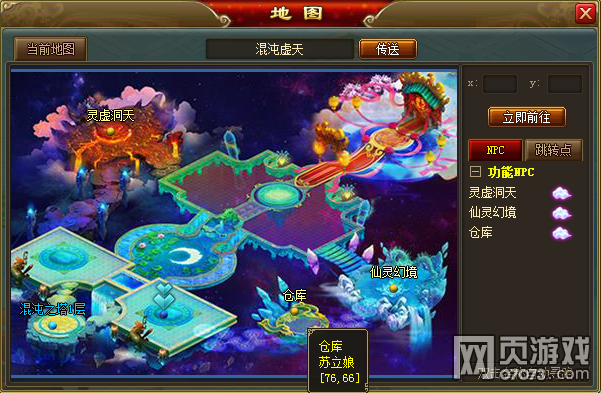 温馨提示:苏立娘在混沌虚天(76,66)哦!(角色等级达到60级后才可开启混沌虚天图标的哦)