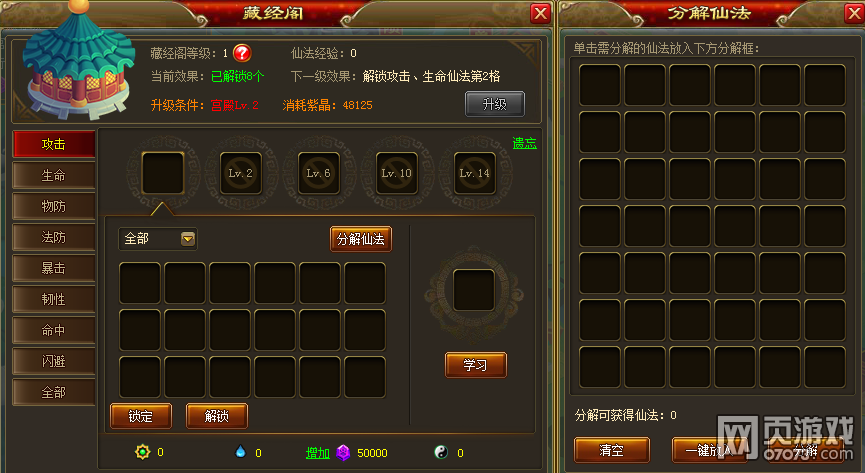 另外还增加了锁定仙法的功能哦,锁定之后就不用怕一些重要的仙法会被分解啦!