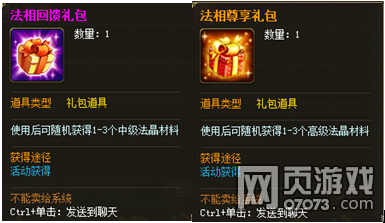 2、每进阶消耗10个【高级法晶材料】,即可获得【法相尊享礼包】×1;