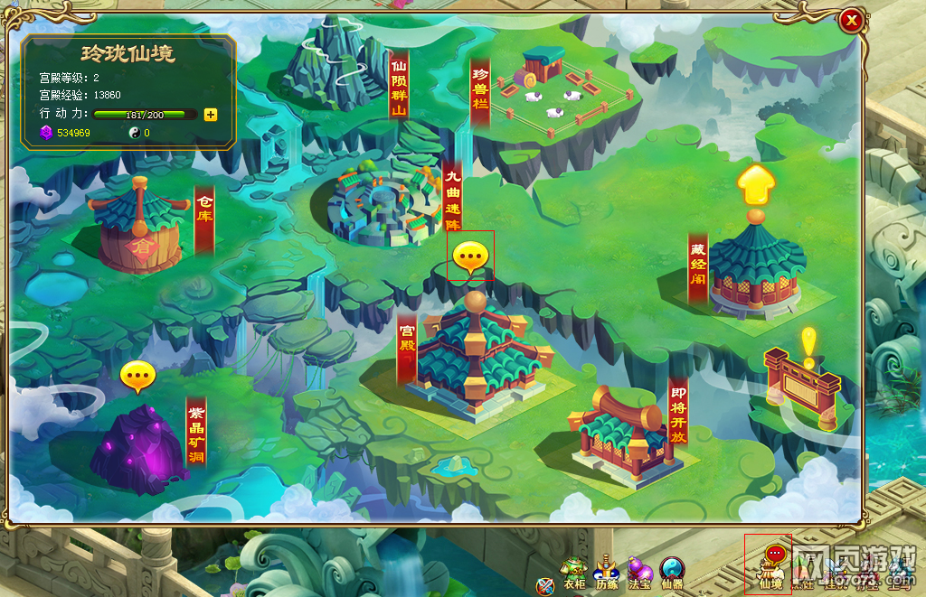 在这次更新中,策划MM为大家带来了第二个优化,当玲珑仙境里宫殿、紫晶矿洞功能按钮冷却时间到了后,会在主界面“仙境”图标上出现提示哦~大家可以及时为矿工们提提士气气,疗疗伤,再也不用担心矿工被可爱又可恶的小鼹鼠打伤啦~
