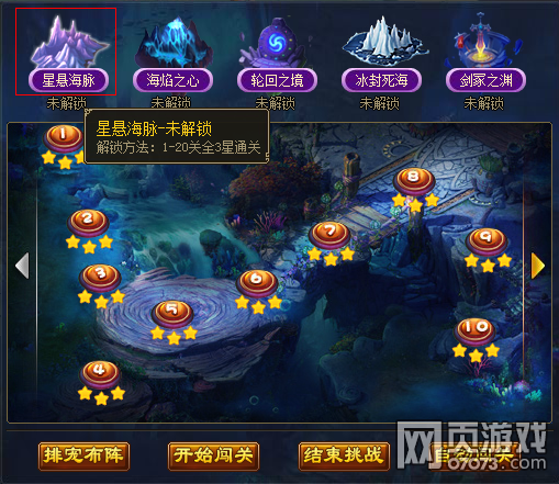 只要将妖神海域1-20关全部3星通关,就可以解锁星悬海脉特殊关卡!!