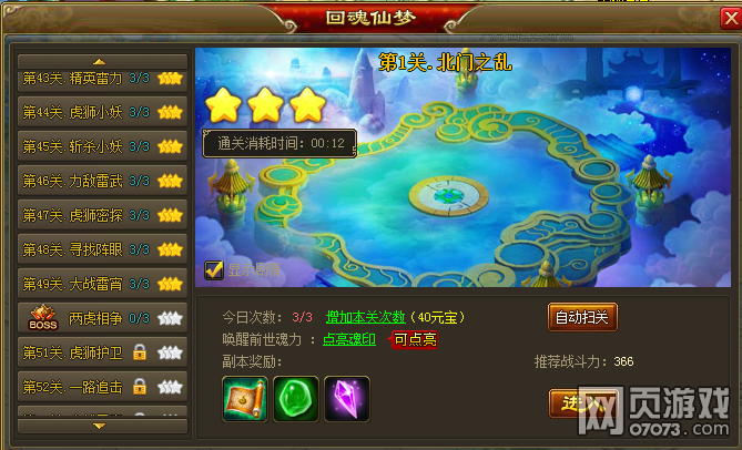 这次更新,策划GG为小伙伴们带来了第二个优化:在回魂仙梦的关卡列表中,显示关卡的通关星数。