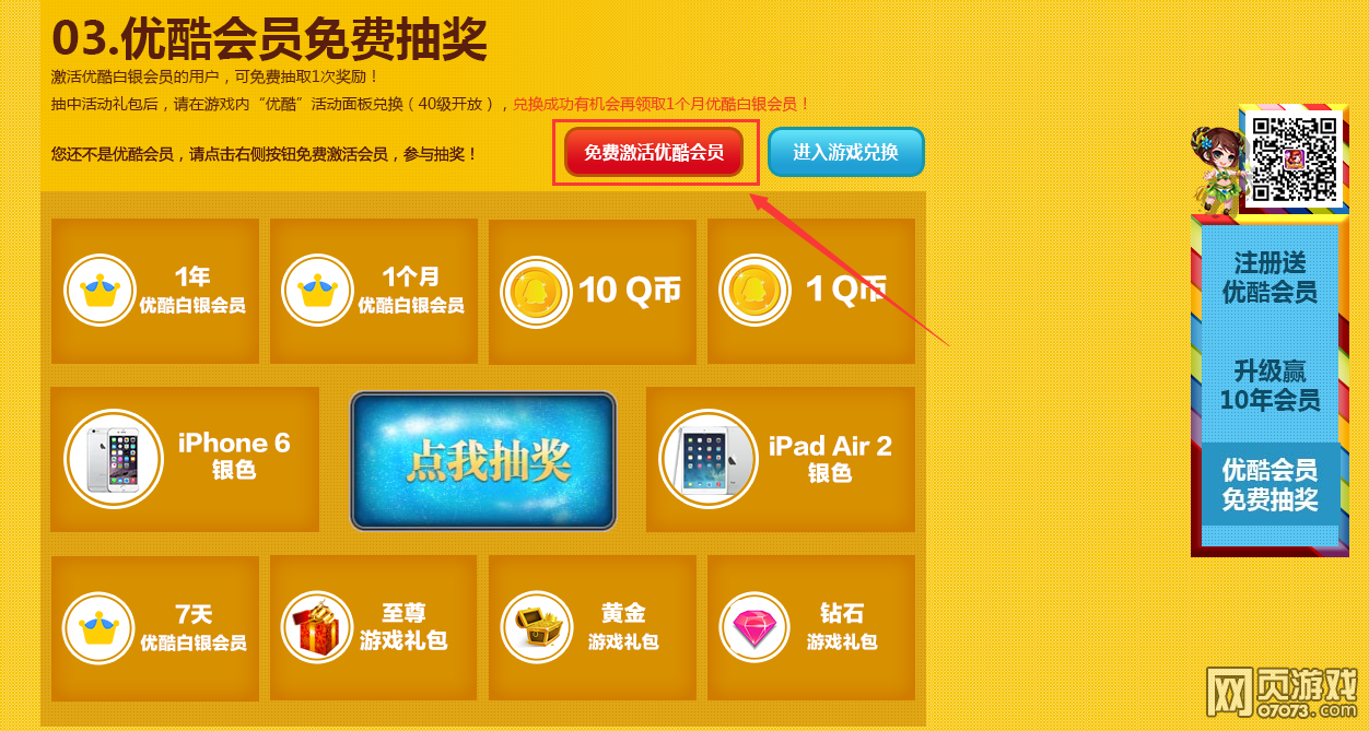 第二步:在页面上点击活动3的“免费激活优酷会员”;