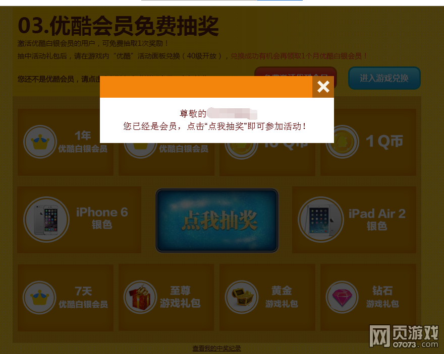 第一步:在游戏里面打开“优酷专题活动”界面,点击“立即前往”按钮;
