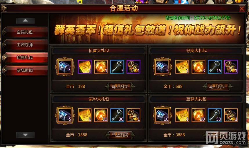 豪华装备宝箱*5、3000金券、星辰之石*20、银钥匙*30、3000威望